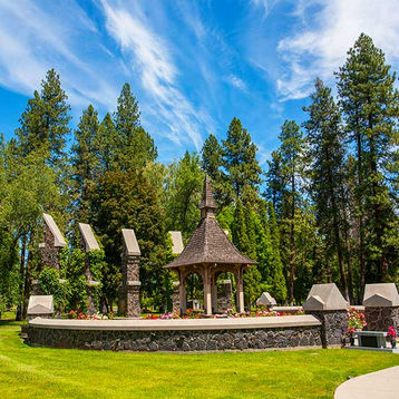 Riverside Memorial Park is directly opposite Greenwood Memorial Terrace on Government Way and its grand entrance is framed by the historic Park Cottage and Heritage Funeral & Cremation. The park covers a total of 161 acres with 85 of those acres developed, overlooking the confluence of the Spokane River and Latah Creek. Native basalt rock formations are used consistently throughout the park's architecture and structures to connect this land to its ancient heritage, as well as its more recent history as you pass through the Kirtland Cutter designed arch entrance to the park.